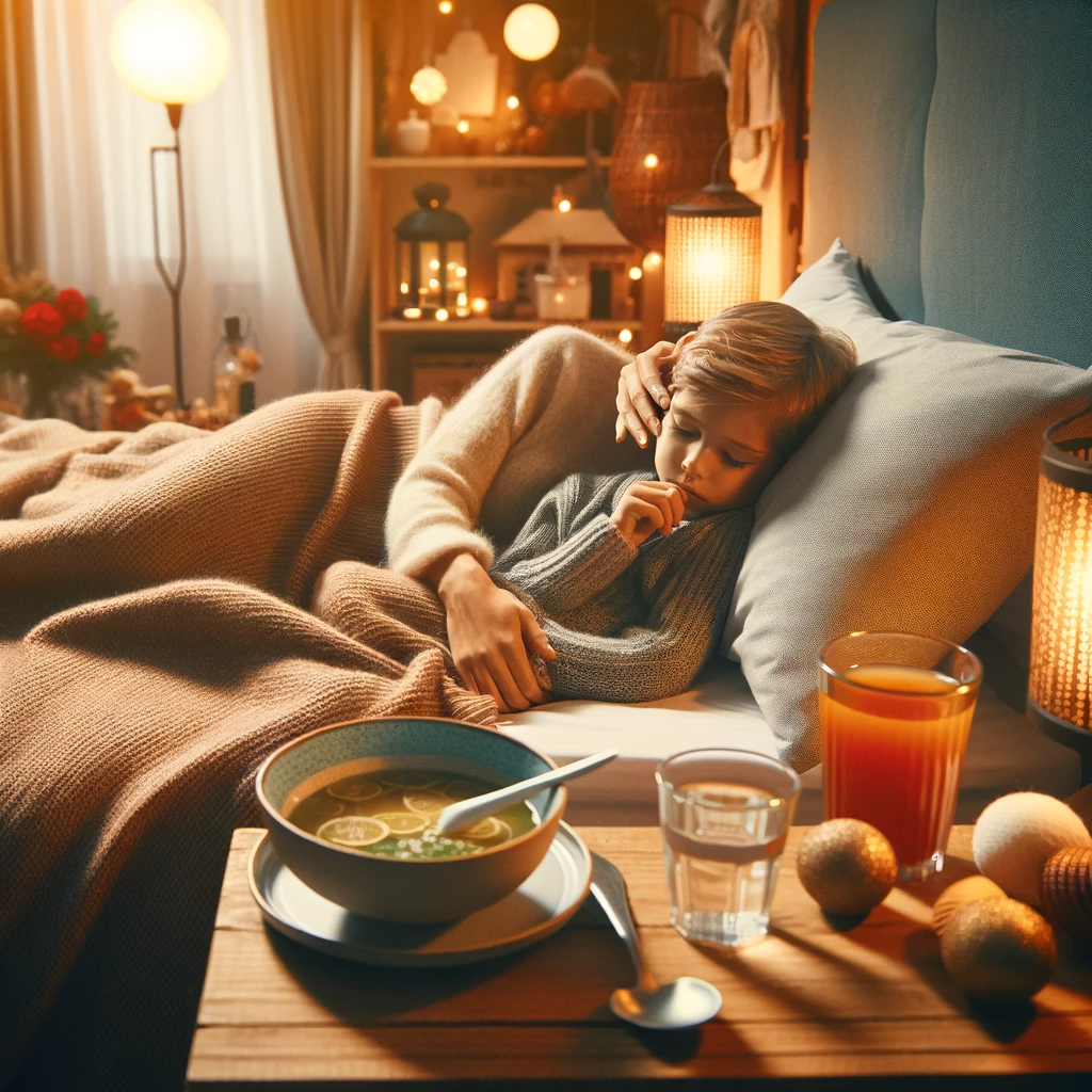 - Hydration: Ensure your child stays hydrated. Offer water, electrolyte solutions, or warm soups.