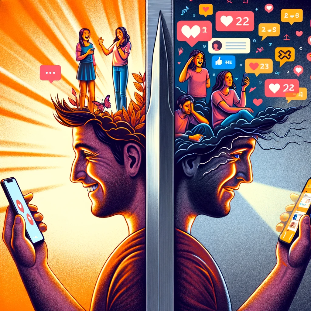 Social media is a double-edged sword, offering benefits like increased connectivity and support networks, while also exposing users to negative experiences such as cyberbullying and unrealistic comparisons.