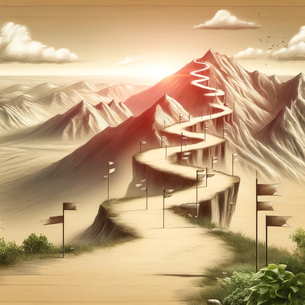 Visualize a mountain path, its progress marked by small, achievable milestones. Setting realistic goals during a career transition is akin to navigating this path.